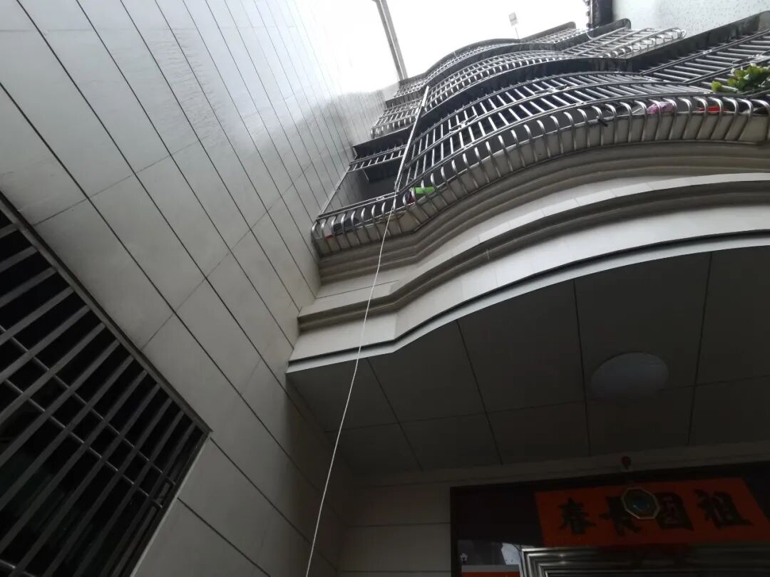 4、外抛逃生绳:检查并确认各个环节安全无误后,将逃生绳抛至楼外,需在不可避免的突出障碍物上垫上毛巾或衣物,避免逃生绳磨损,然后再沿着墙面下降。