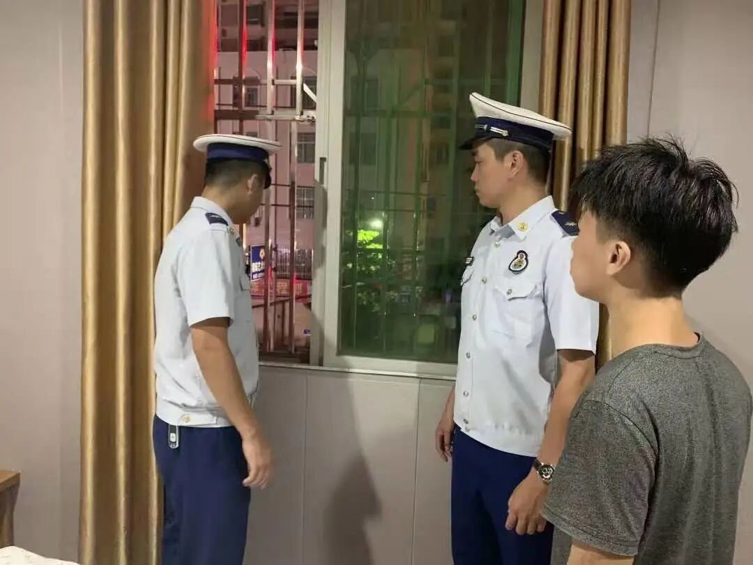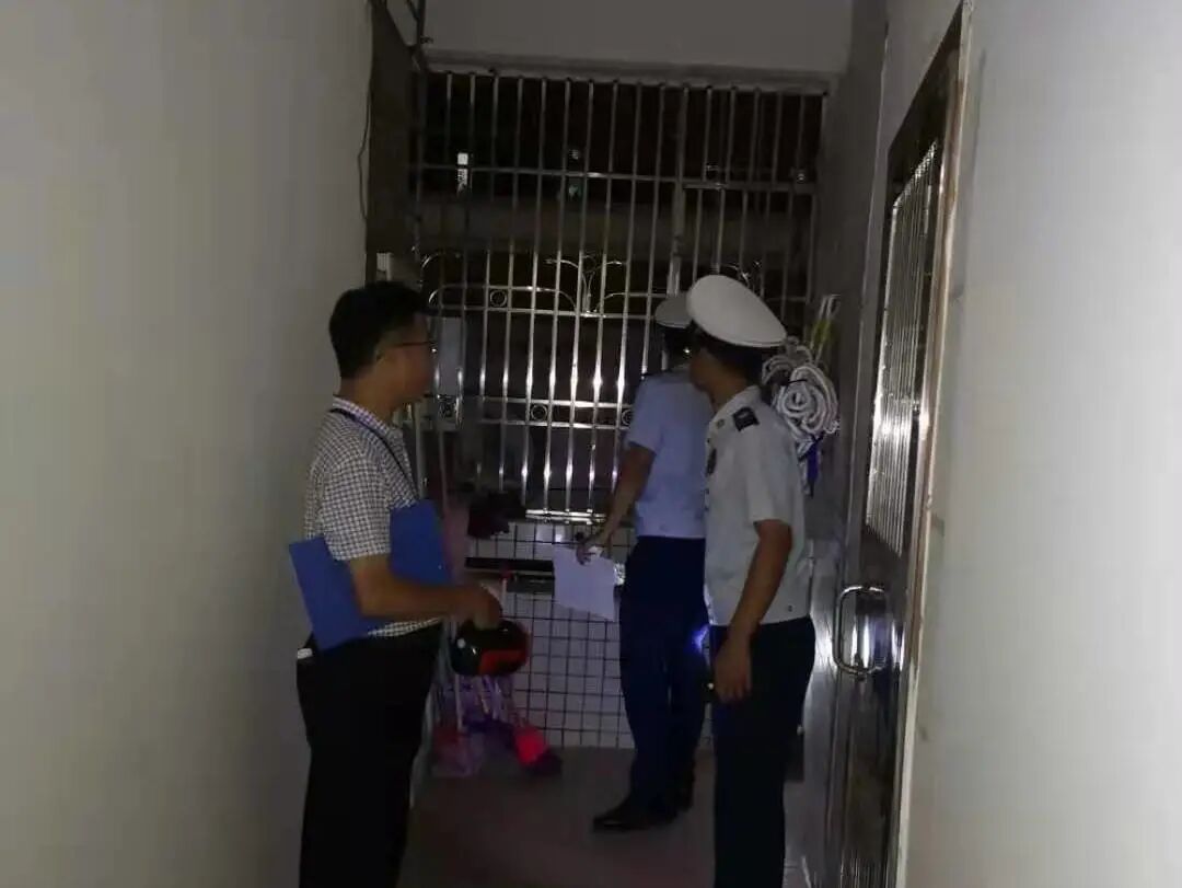 · 图 · 镇消防所消防安全管理员正在检查指导逃生窗开启情况