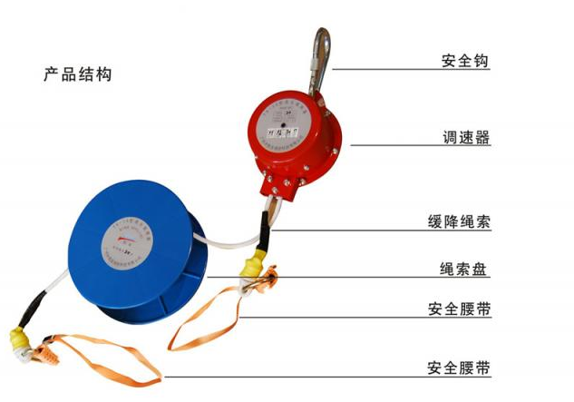 主要针对普通家庭和个人使用,其构造由调速器、安全带、安全钩、钢丝绳等组成,是一种可使人沿(随)绳(带)缓慢下降的安全营救装置。使用时先将挂钩挂在室内窗户、管道等可以承重的物体上,然后将绑带系在人体腰部,从窗户上下落缓缓降到地面。