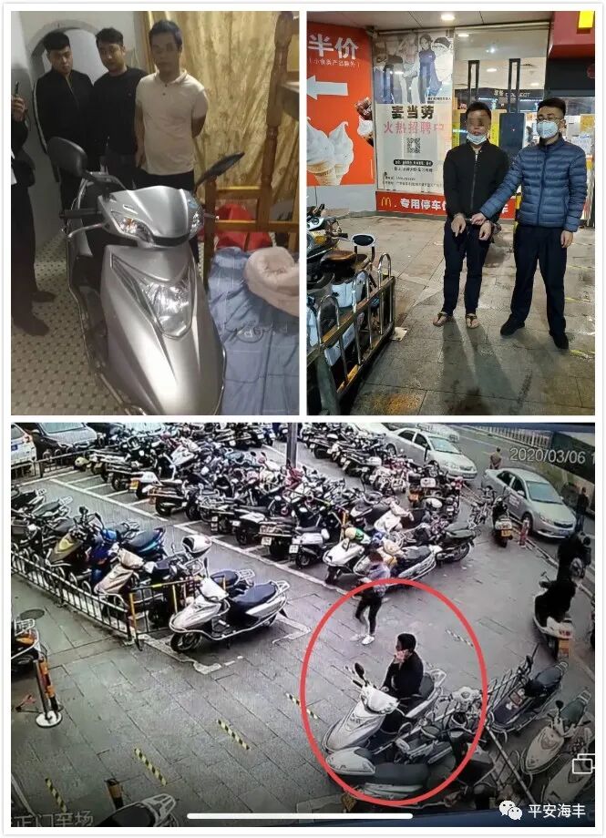 3月6日18时许,海城镇蓝天广场停车场发生一宗盗窃摩托车案,案件发生后,龙津派出所迅速组织精干力量开展侦查。因嫌疑人作案佩戴口罩,且逃跑路线穿街滑巷,给侦查追踪增加了不少难度。办案民警充分运用智慧新警务、平安海丰公共视频等科技化成果,以大数据、信息化为基础,结合群众路线,全所警辅人员化妆逐户搜查,最终将嫌疑人的藏匿地点锁定在新兴街路段。经布控, 3月7日凌晨2时许,成功抓获涉嫌盗窃的嫌疑人叶某仔(男,30岁,红海湾人),现场缴获被盗车辆一部。经审讯,嫌疑人叶某仔对在蓝天广场停车场盗窃摩托车的违法事实供认不讳,现案件正进一步侦办当中。
