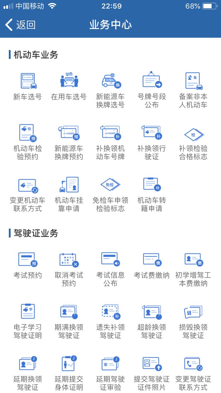(驾考预约、驾驶证审验、期满换证、遗失补证、超龄换证、损毁换证、延期换证/提交身体条件证明/审验、变更驾驶证联系方式等)